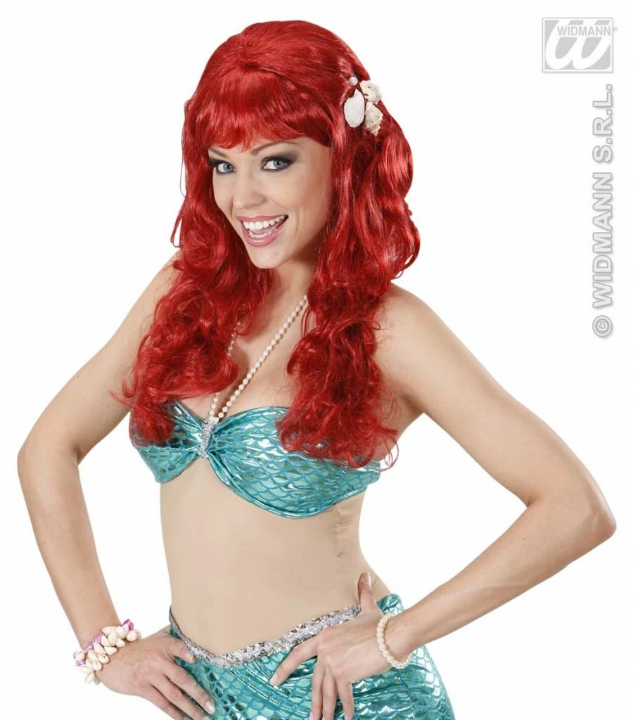 Pruik Zeemeermin Rood Met Schelpen